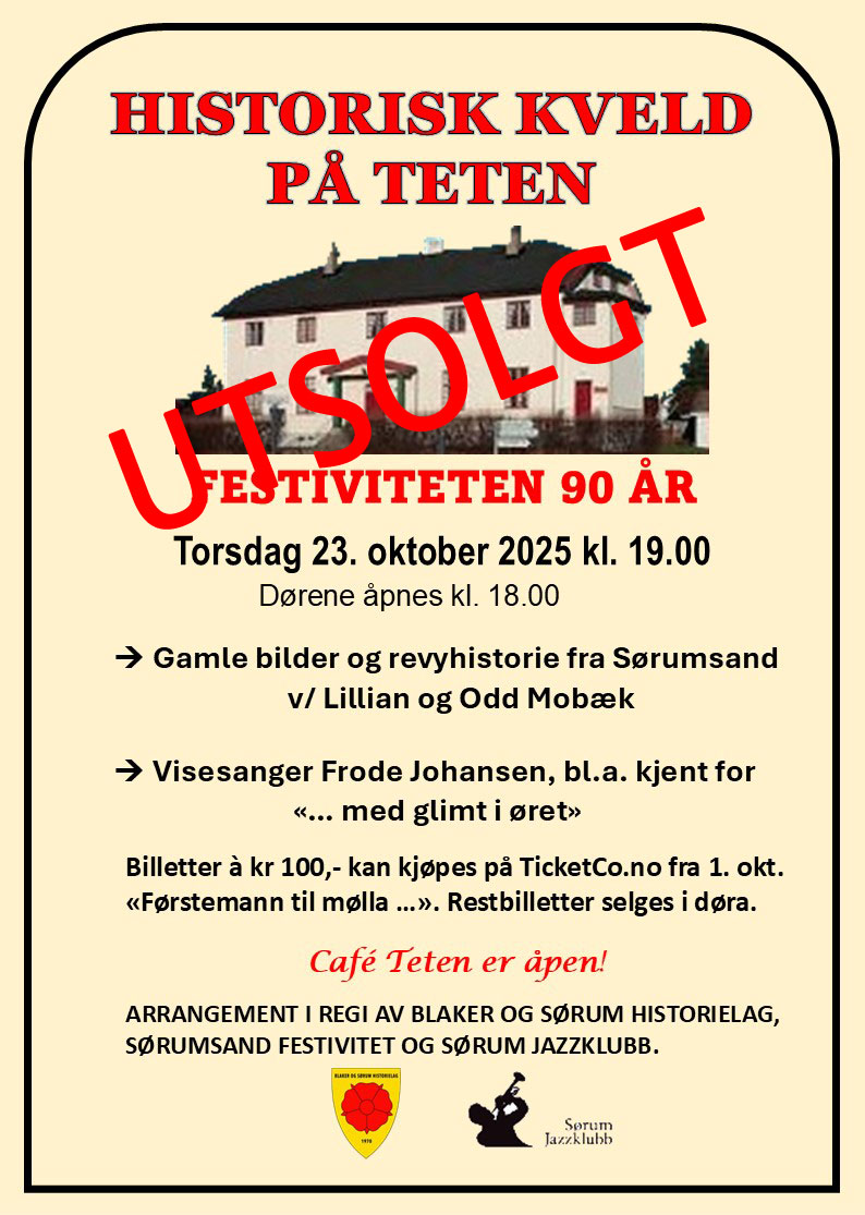 Historielaget har vært aktive i høst. I oktober var laget medarrangør for Festivitetens 90-årsfest med bl.a. gamle revyer, fullt hus! Og i november var det hopprenn med stødig nedslag og 20 i stil på Blaker Skanse, fullt hus her også. Og ny bok og 2026-kalenderen er også klare for salg.