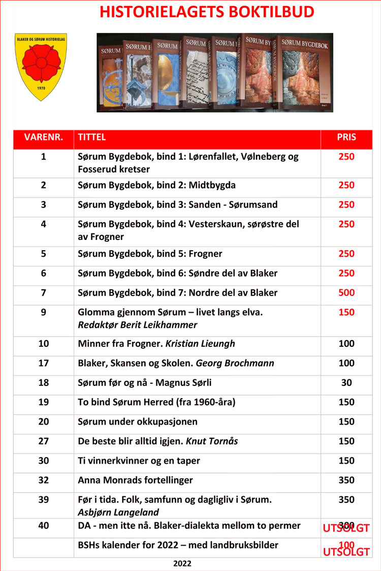 Bøker fra Blaker og Sørum Historielag