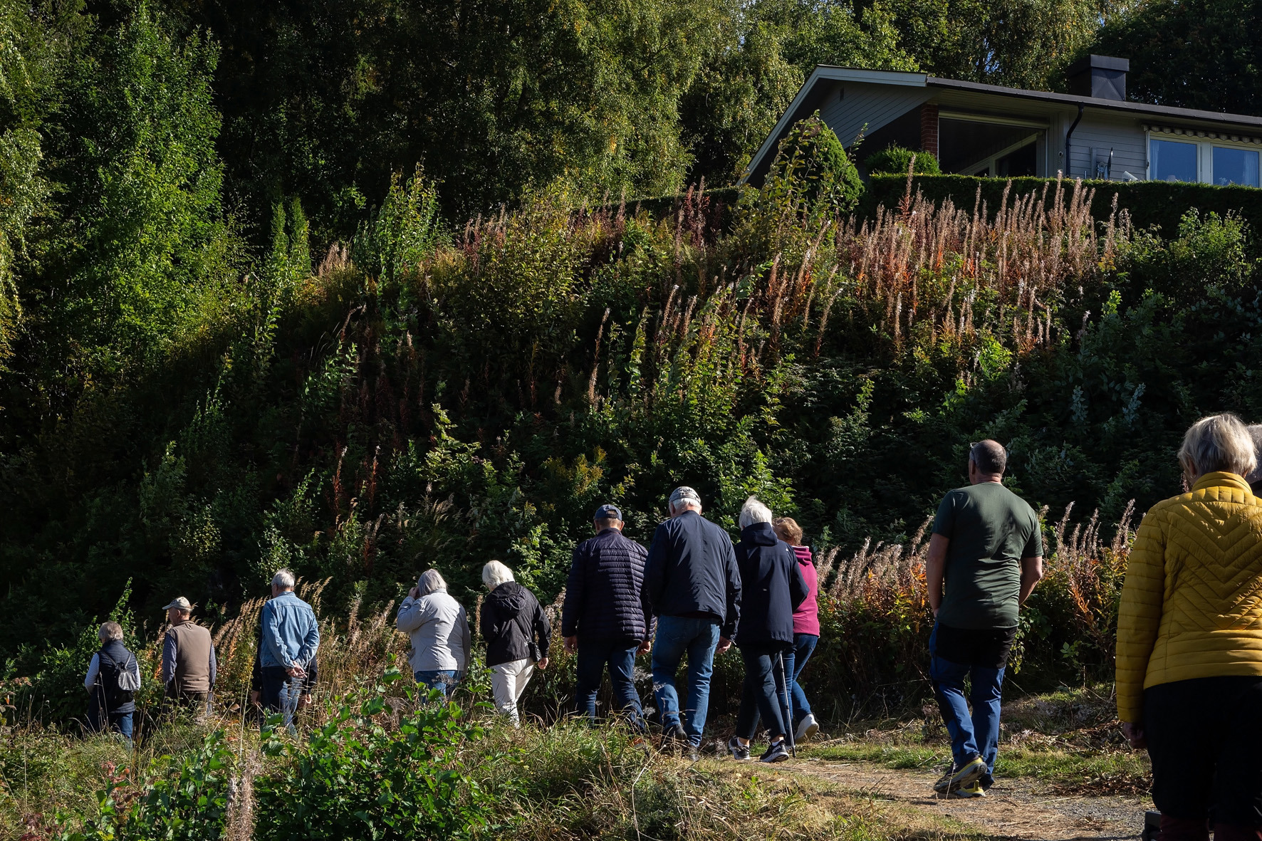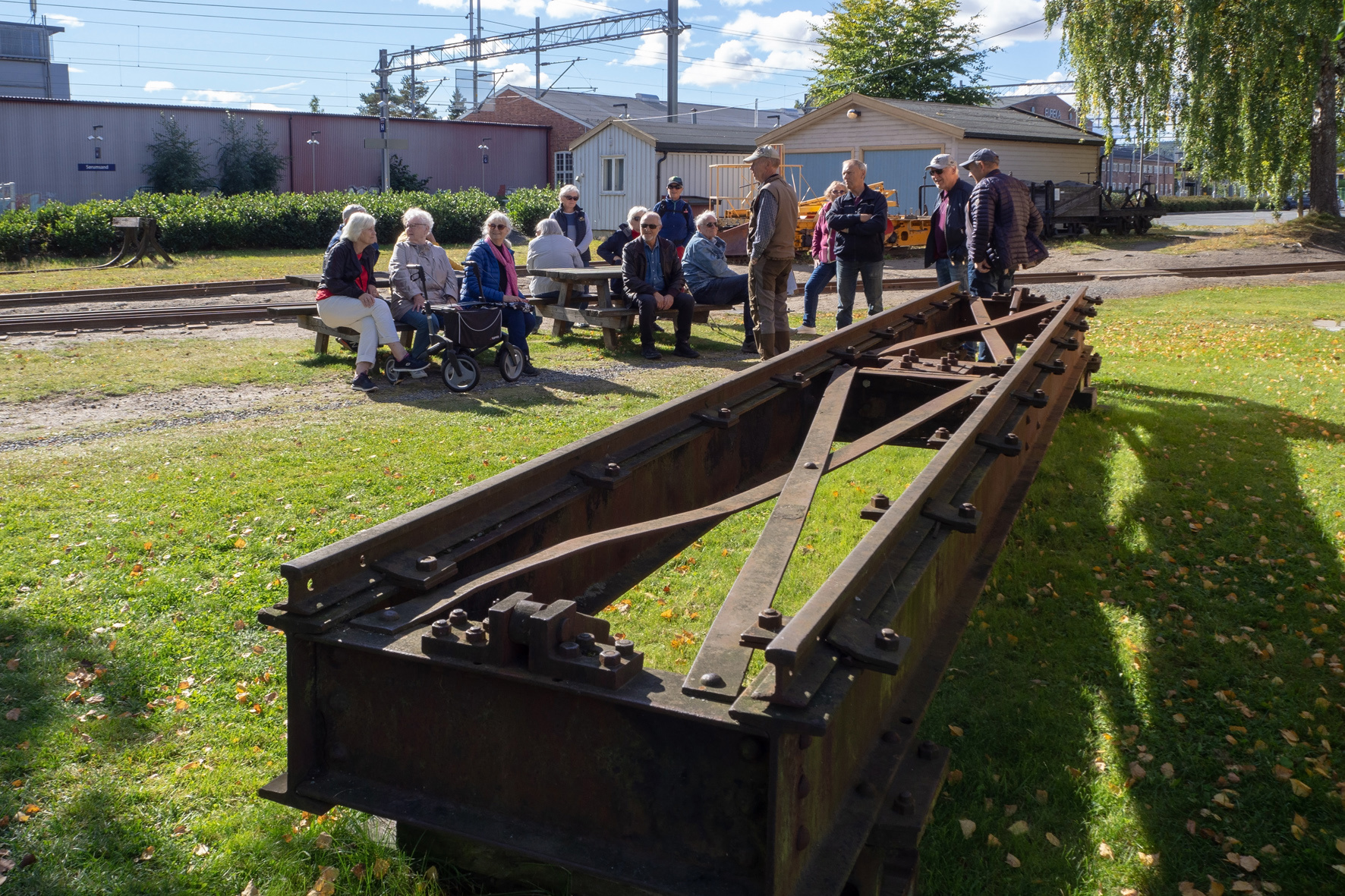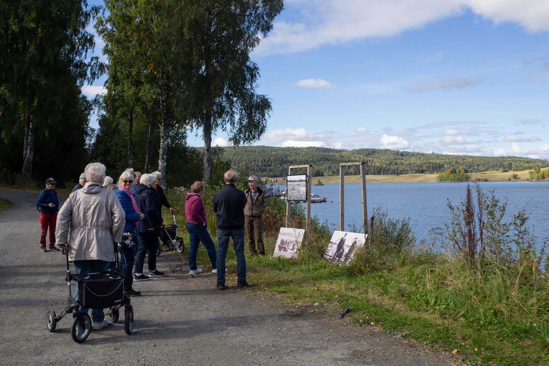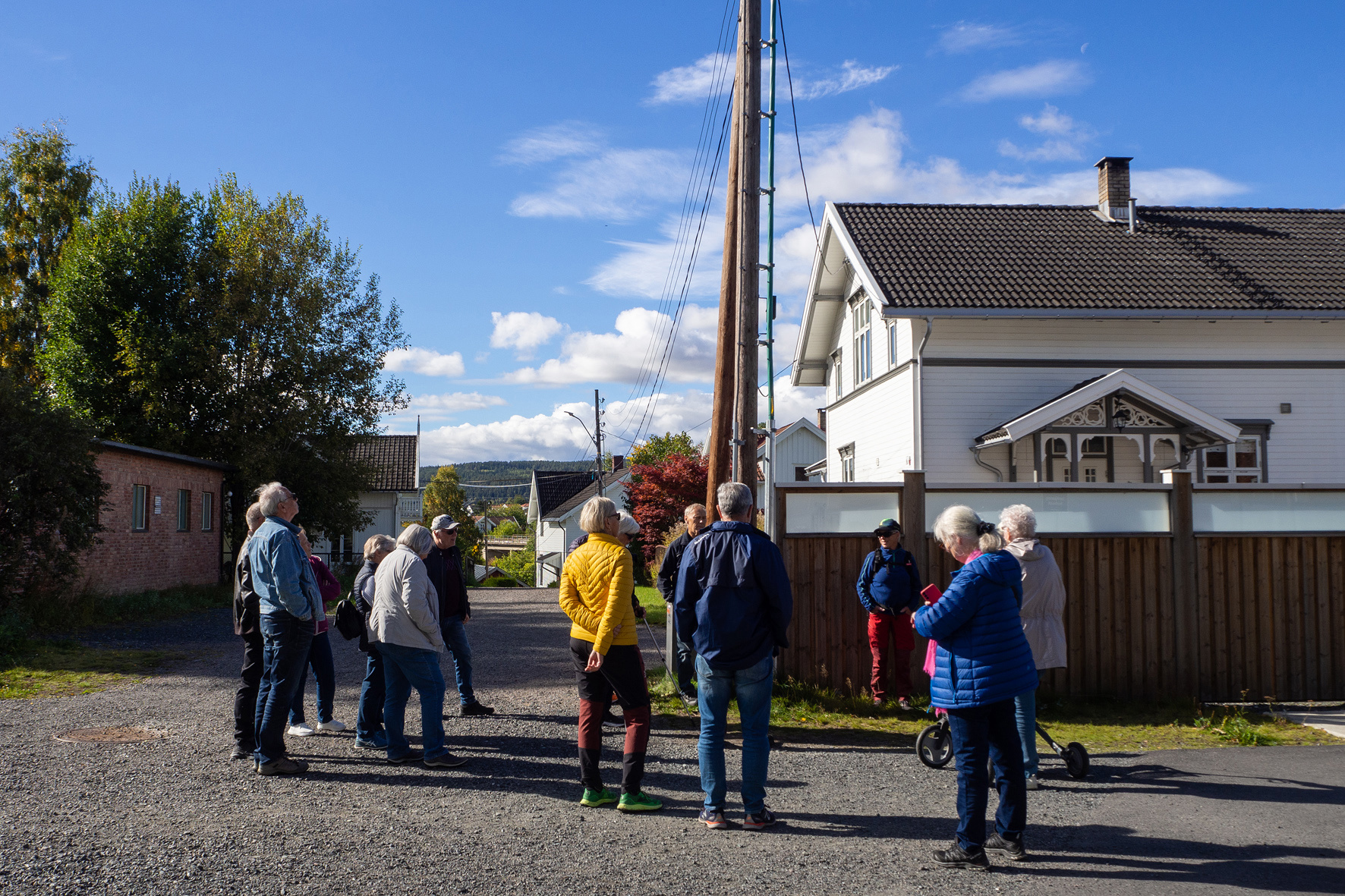 Historielaget arrangerte søndag 18. september 2022 rusletur på Sørumsand med Morten Svendsen som dyktig omviser. Han har vokst opp på Sørumsand, og fortalte mye interessant og morsomt, både slekts- og stedshistorie, til de mange frammøtte. ALLE FOTO: Ingun Orderud
