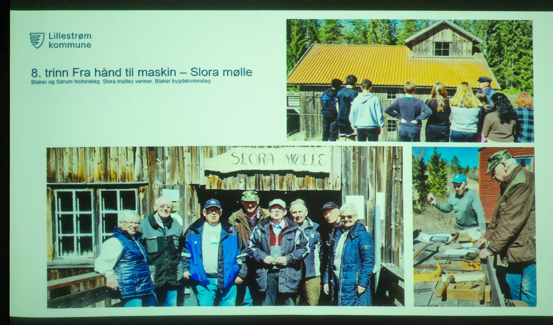 Bildene er fra Blaker og Sørum Historielags godt besøkte og interessante medlemsmøte på BesteFarHuset 28. februar 2024, der Bjørn Erik Nyberg holdt foredraget «Langs gamle veifar». Så var det velsmakende kringle og kaffe, og deretter fortalte Elin Mørk om gammeldags skole på Vølneberg og Slora Mølle. Alle foto: Ingun Orderud