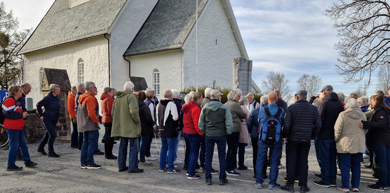 Det var rundt 60 frammøtte i det fine været, og det ble en interessant rusletur ved vår flotte kirke fra 1166.